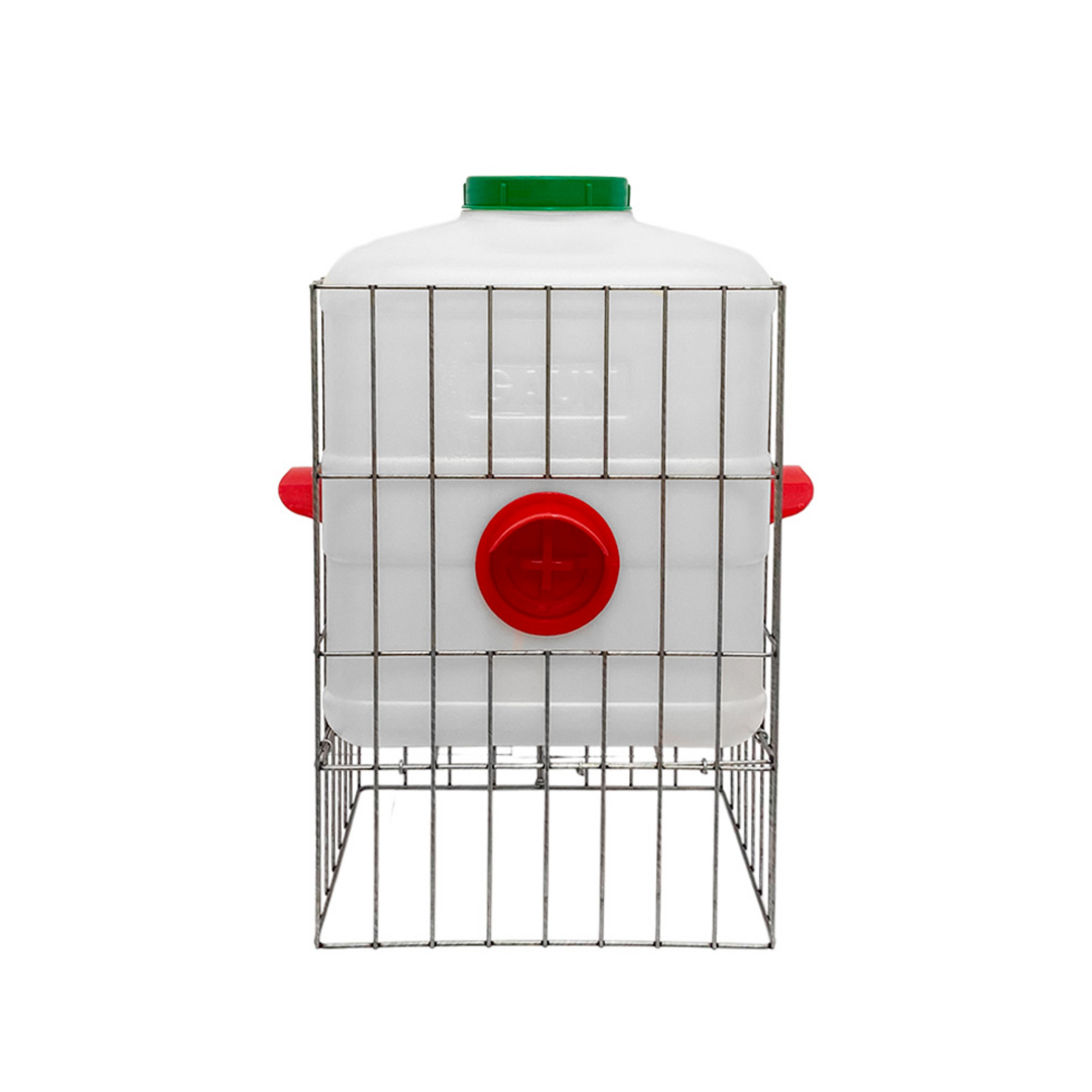 Tanken rommer hele 20 liter og er dekket av et metallgitter som beskytter fôret mot urenheter og skadedyr. Dette sikrer god hygiene og bidrar til at fôret holder seg friskt lenger. Gitteret fungerer også som oppheng – tanken kan enkelt henges opp på krok uten behov for ekstra stativ eller festeanordning.