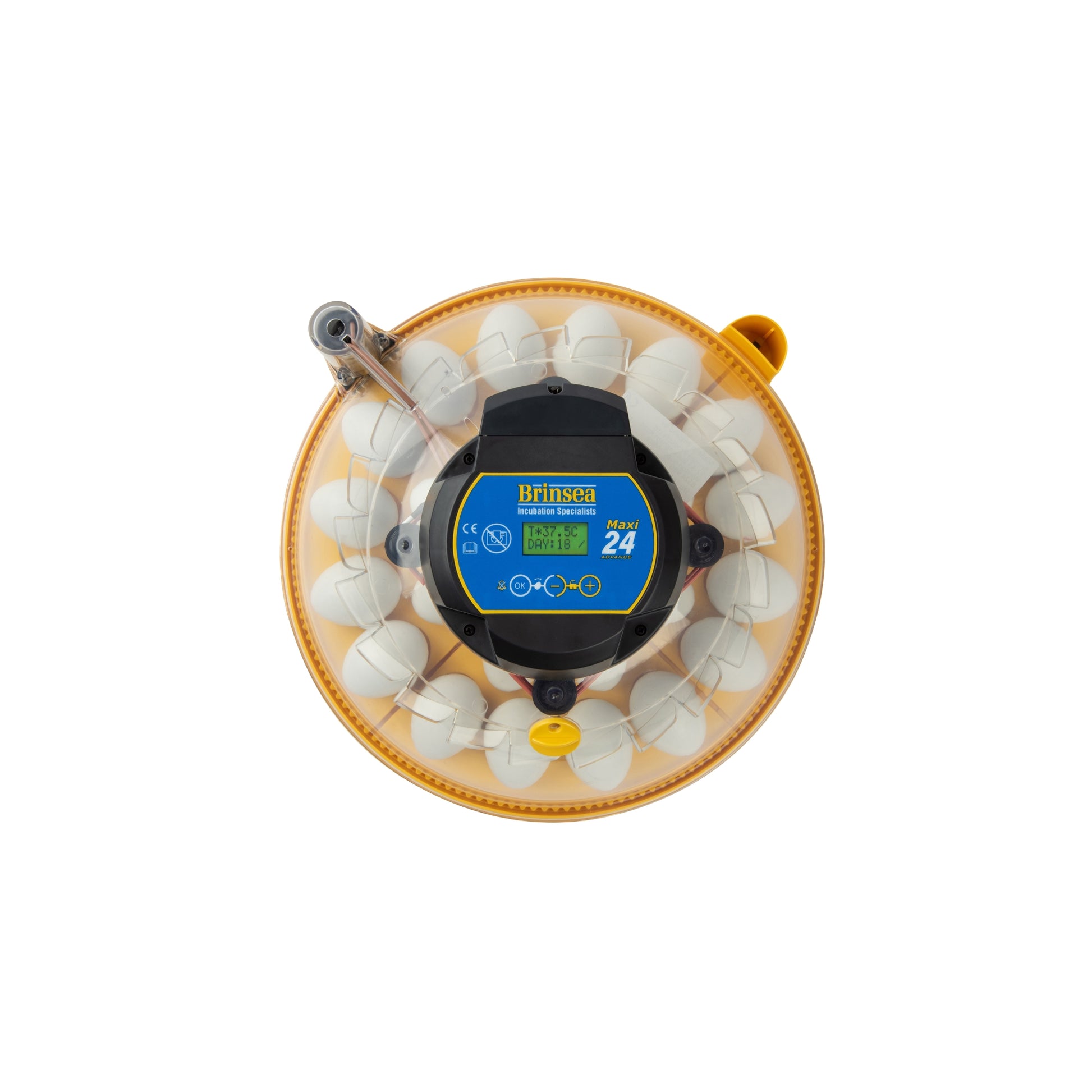 Maxi 24 Advance vender eggene automatisk og gir digital temperaturkontroll med smarte funksjoner som varsler ved strømbrudd, temperatursvingninger og inkluderer en ny patentert romtemperaturalarm fra Brinsea. Periodisk kjølefunksjon sikrer optimale forhold for eggene dine.