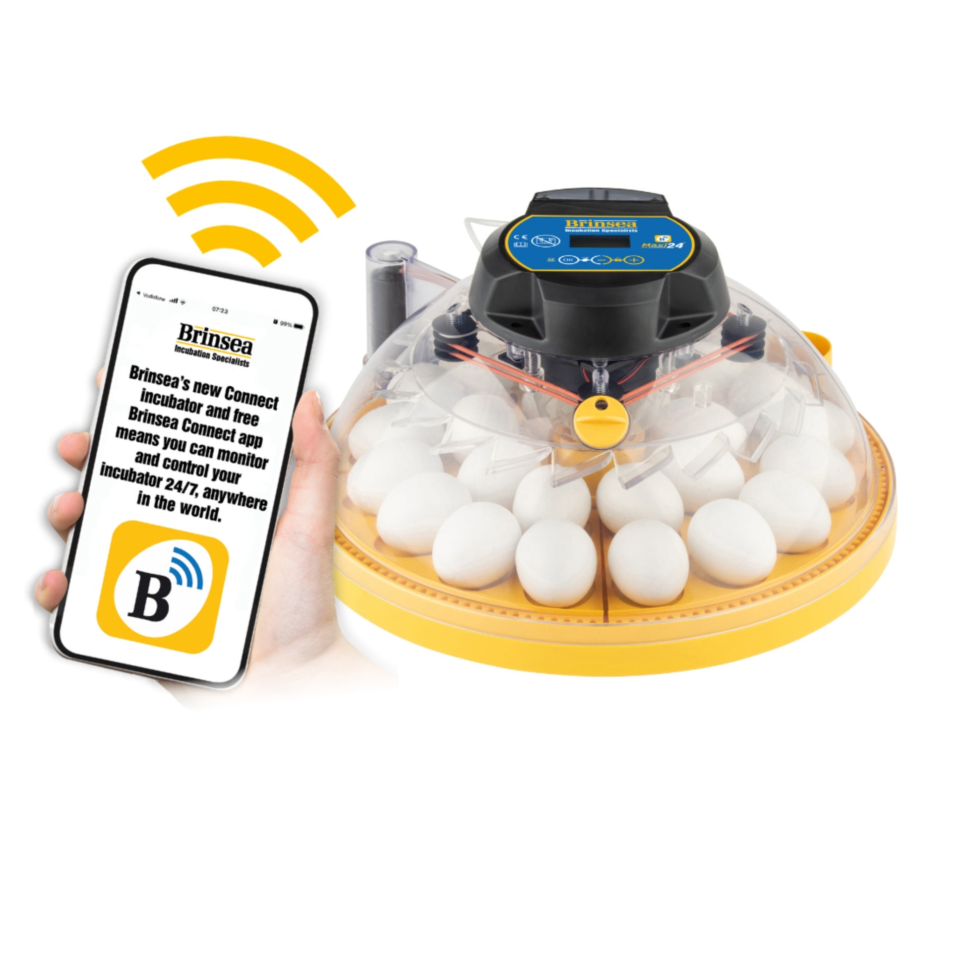 Den gratis Brinsea Connect-appen lar deg overvåke og styre rugemaskinen via ditt lokale Wi-Fi-nettverk. Appen gjengir alle funksjonene fra maskinen, inkludert overvåkning og justering av temperatur og fuktighet, innstillinger og varsler om alarmer.