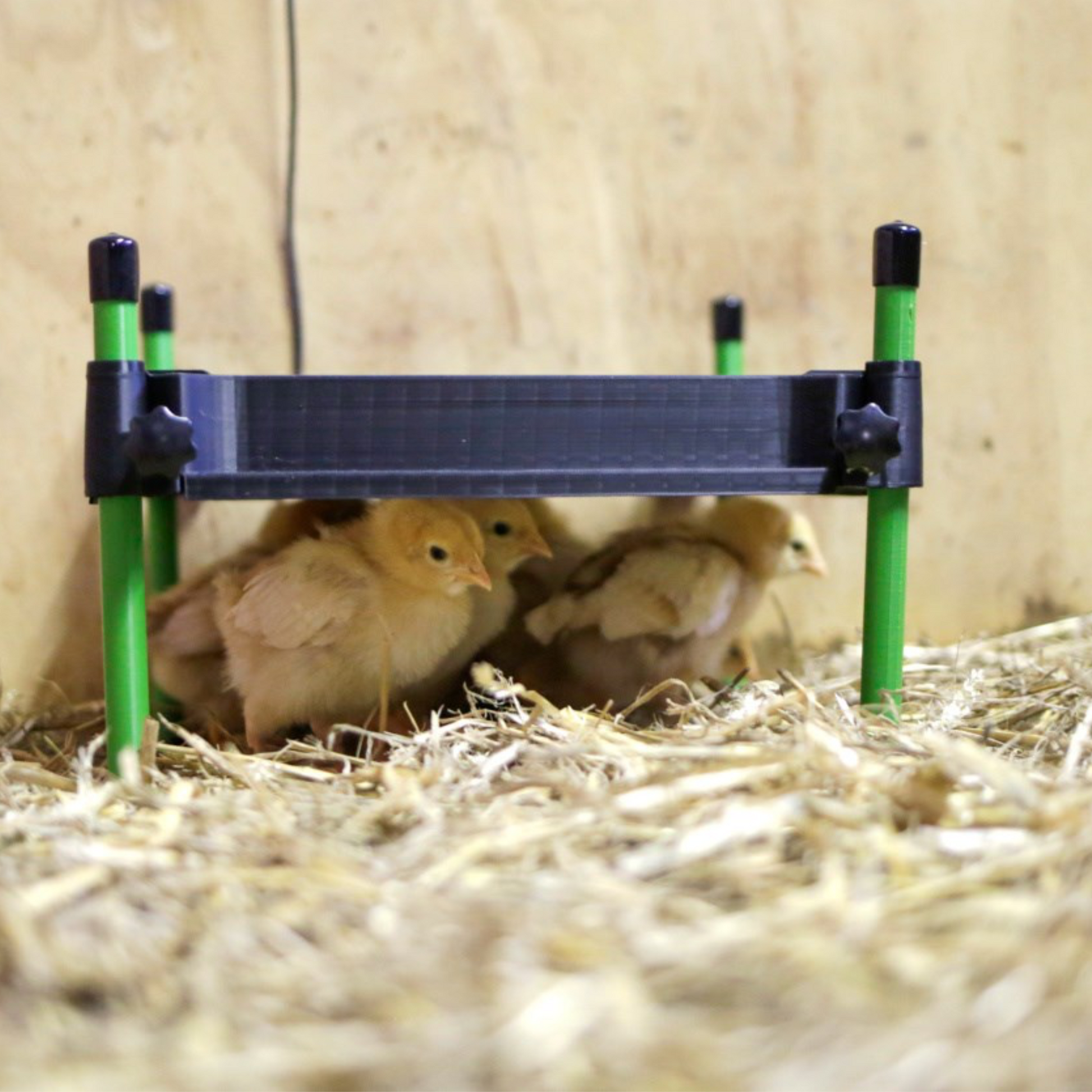 Når kyllinger klekkes, har de et stort behov for varme. Normalt ville de søke tilflukt under hønemorens fjær, der varmen bygges opp og gir en trygg hvileplass. CosyHeat varmetak etterligner denne naturlige varmekilden og gir kyllingene den trygge og stabile varmen de trenger de første ukene av livet. 30 x 30 cm
