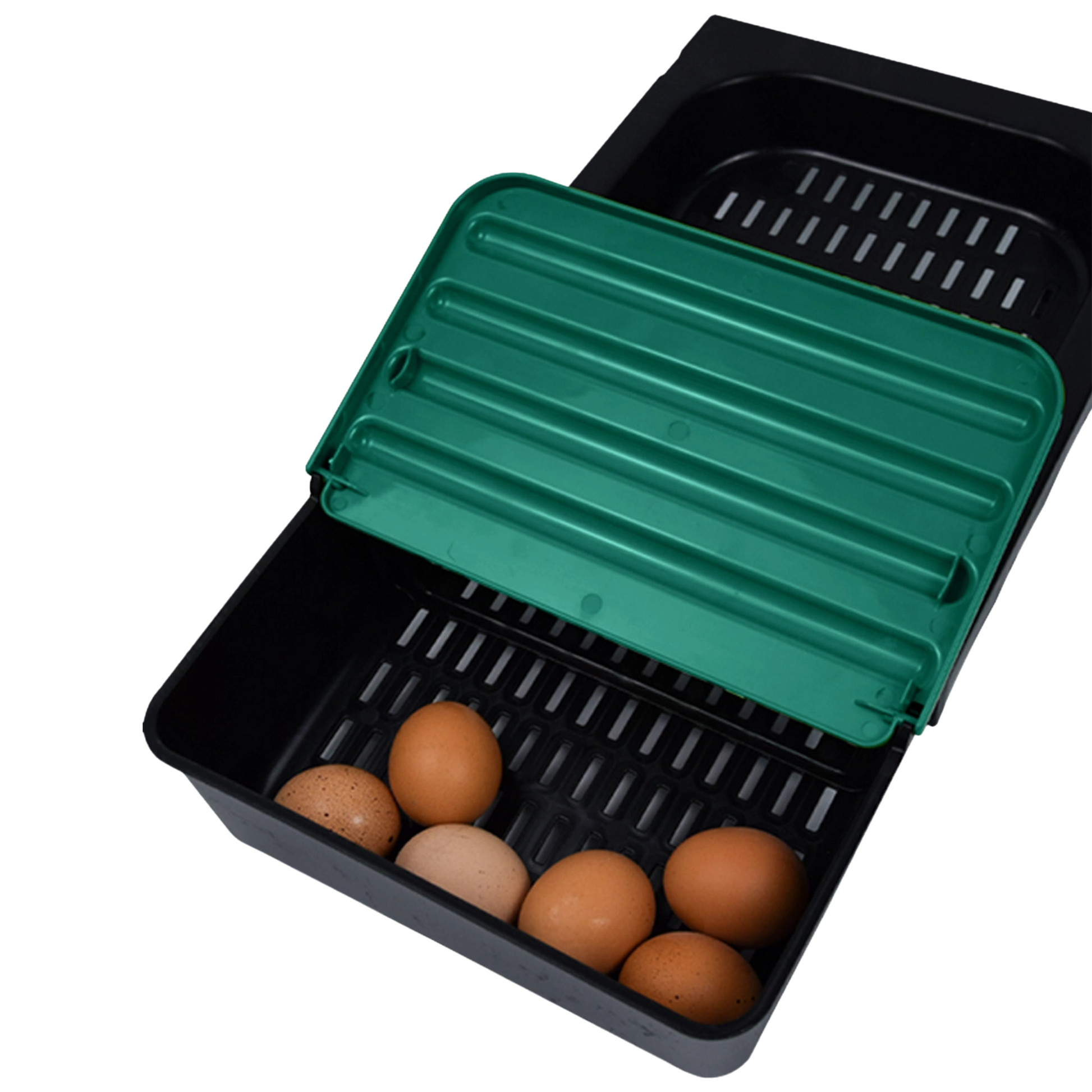 Gaun verpekasse med 3 rom og plastgulv er designet med fokus på kvalitet og komfort for høns og annet fjærfe. Denne verpekassen gir en trygg og behagelig plass for egglegging. Det svakt skrånende plastgulvet sørger for at eggene ruller forsiktig ned i en separat plastskuff, slik at de holder seg rene og trygge.